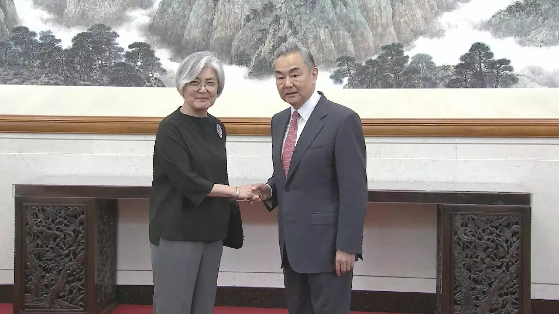 Chinese Foreign Minister Wang Yi met with Kyung-wha Kang, president of the Asia Society, in Beijing on Tuesday.