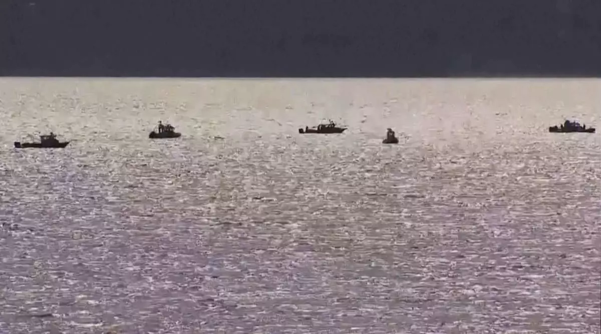 This image taken from video provided by KOMO shows boats searching for missing survivors after a boat took on water and sank in Possession Sound near Seattle, Wednesday, May 21, 2025. (KOMO via AP)