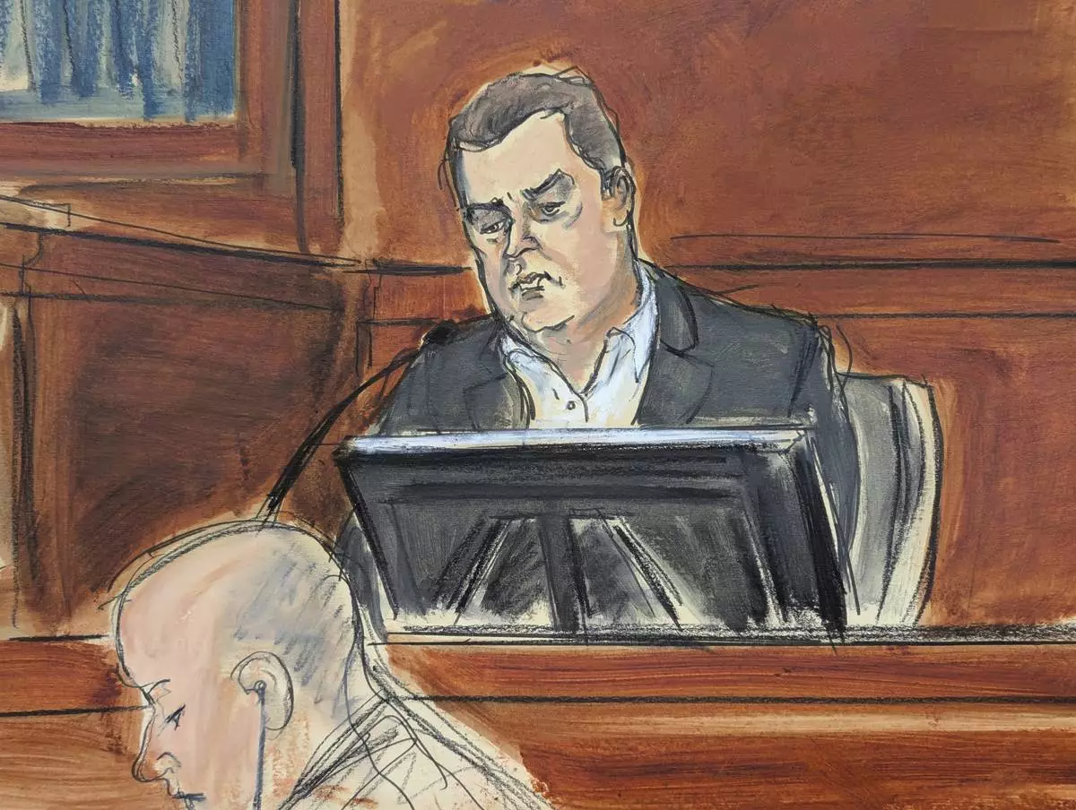 George Kaplan, Sean "Diddy" Combs' former personal assistant, testifies on the witness stand during Sean "Diddy" Combs' sex trafficking and racketeering trial in Manhattan federal court, Wednesday, May 21, 2025, in New York. (Elizabeth Williams via AP)