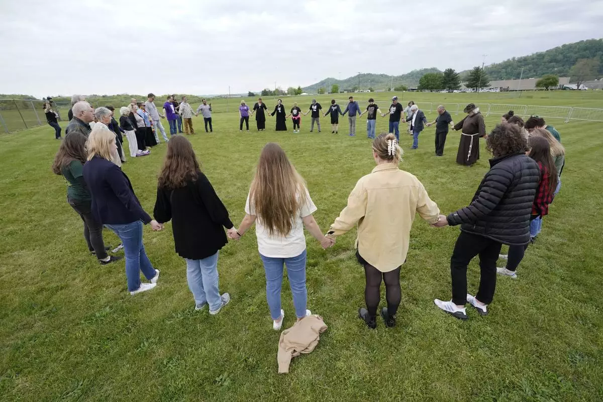 FILE - Capital punishment protesters pray on the grounds of Riverbend Maximum Security Institution before the scheduled execution of inmate Oscar Smith, April 21, 2022, in Nashville, Tenn. AP Photo/Mark Humphrey, File)