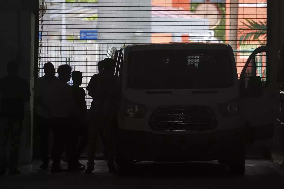 Plainclothes agents from U.S. Immigration and Customs Enforcement load people detained at the Miami Immigration Court into a Department of Homeland Security van in Miami, on Wednesday, May 21, 2025. (AP Photo/Rebecca Blackwell)