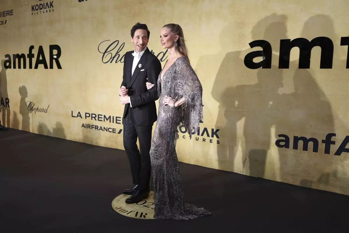 Adrien Brody, left, and Georgina Chapman pose for photographers upon arrival at the amfAR Cinema Against AIDS benefit at the Hotel du Cap-Eden-Roc, during the 78th Cannes international film festival, Cap d'Antibes, southern France, Thursday, May 22, 2025. (Photo by Joel C Ryan/Invision/AP)