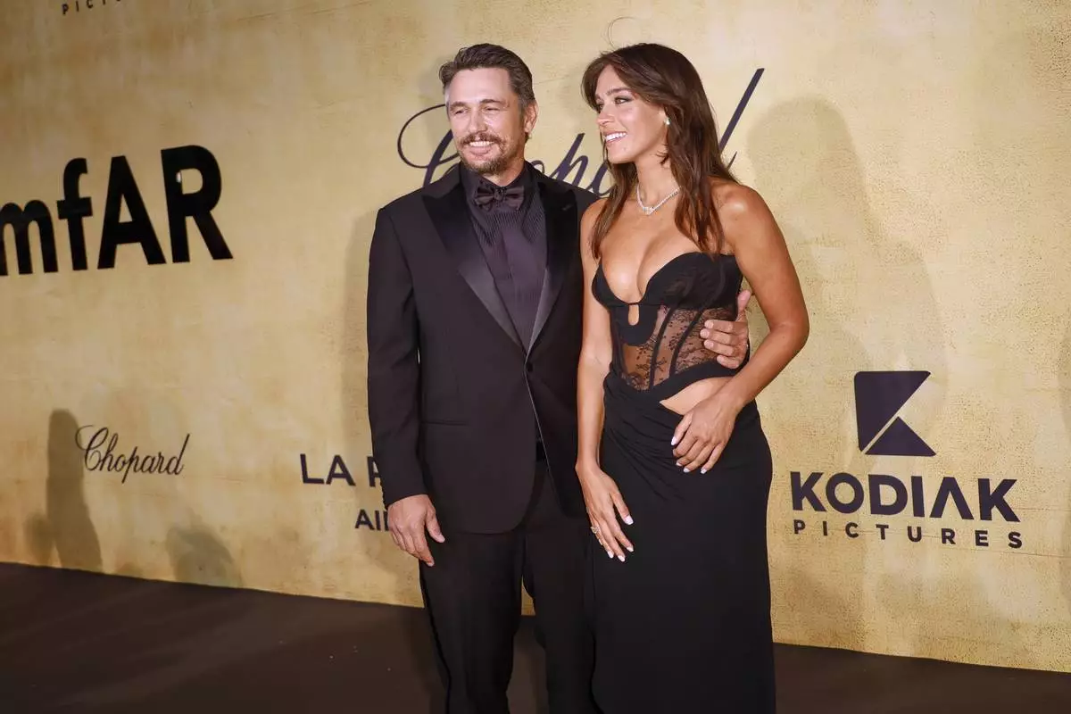 James Franco, left, and Izabel Pakzad pose for photographers upon arrival at the amfAR Cinema Against AIDS benefit at the Hotel du Cap-Eden-Roc, during the 78th Cannes international film festival, Cap d'Antibes, southern France, Thursday, May 22, 2025. (Photo by Joel C Ryan/Invision/AP)