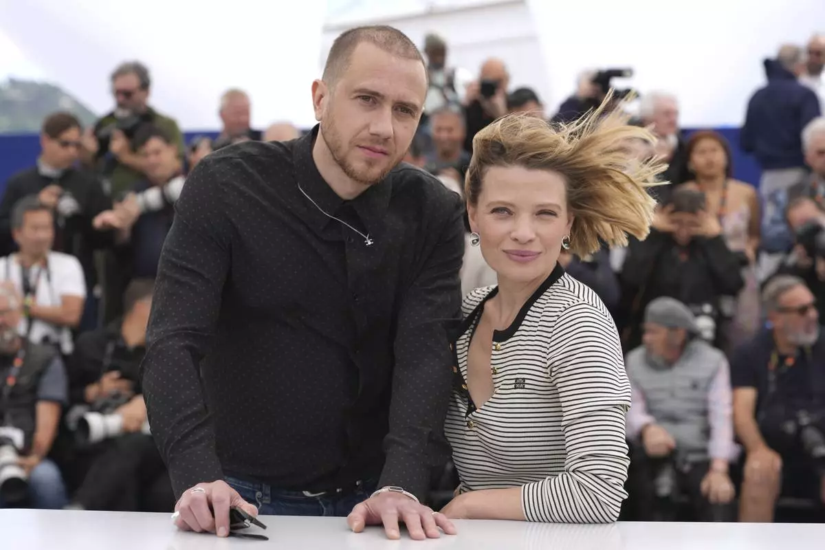 Bastien Bouillon, left, and Melanie Laurent pose for photographers at the photo call for the film 'Connemara' at the 78th international film festival, Cannes, southern France, Thursday, May 22, 2025. (AP Photo/Natacha Pisarenko)
