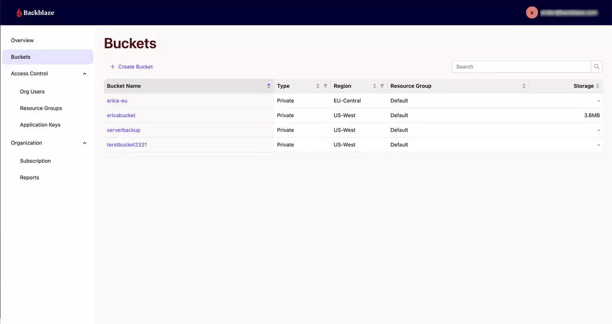 Backblaze's upcoming Enterprise Web Console showcasing multi-region buckets.