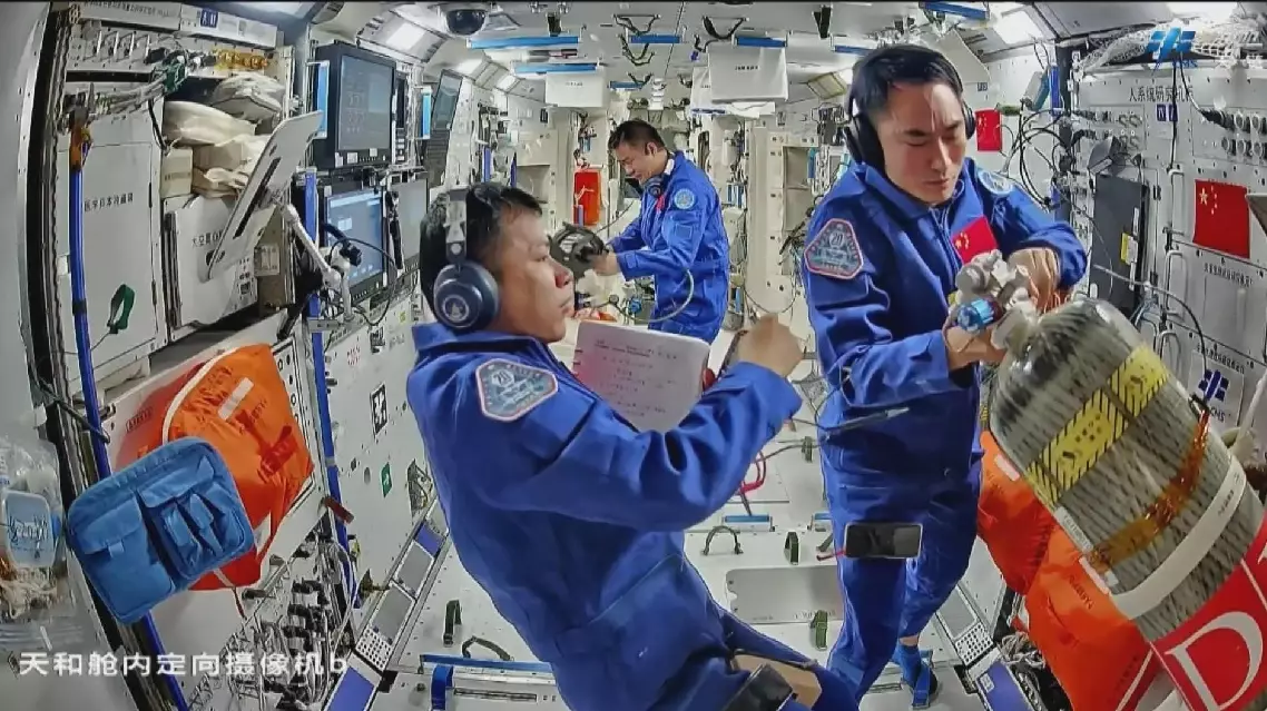 The three astronauts aboard Shenzhou-20 -- Chen Dong, Chen Zhongrui, and Wang Jie -- have quickly adapted to life in microgravity and accomplished various tasks since entering China's Tiangong space station on April 25.