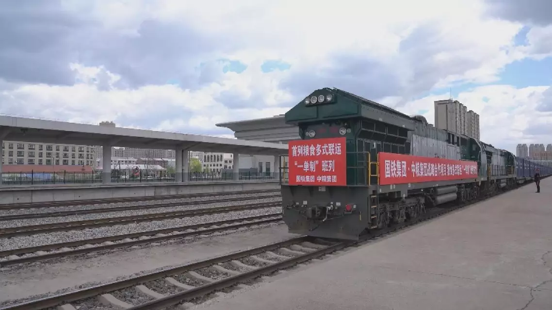 China has launched its first grain train service utilizing a multimodal transportation system with just a single bill of lading in northeast China's Jilin Province.