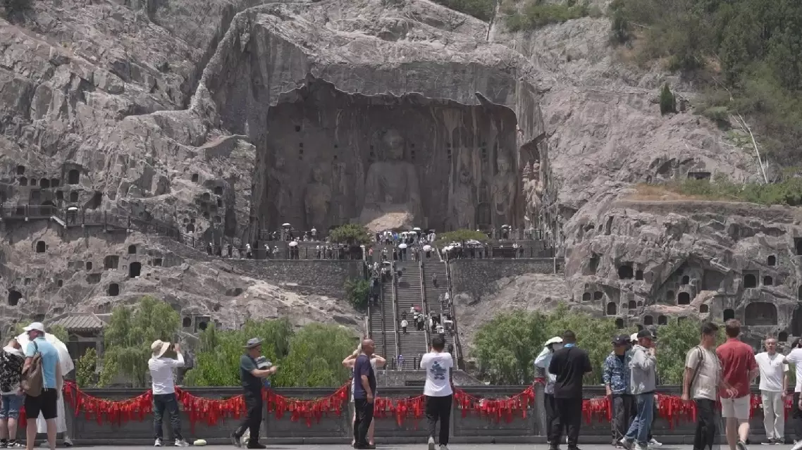 Staff at the Longmen Grottoes, the world's largest treasure trove of stone carvings, highlighted the importance of preserving cultural heritage following President Xi Jinping's encouragement for protecting historical legacies while boosting cultural and tourism industries. Xi on Monday inspected the Longmen Grottoes in Luoyang City, Henan Province. "President Xi paid close attention to the preservation efforts of Longmen Grottoes. He inquired in detail about the overall layout of the grotto statues, the current preservation status, and existing issues. What struck me most was how President Xi, while interacting with tourists, emphasized that China's 5,000-year civilization is well-documented and traceable. He encouraged everyone to visit more often and urged children to come and learn about it. We are deeply inspired and feel a great sense of responsibility," said Yu Jie, Party secretary of the Longmen Grottoes Academy. The 1,500-year-old Longmen Grottoes are one of China's Four Great Grottoes and have been acclaimed by UNESCO as the "pinnacle of Chinese stone carving art." Its construction began during the reign of Emperor Xiaowen of the Northern Wei Dynasty (386-534) and lasted for as many as 400 years. It now boasts 2,345 caves and niches, housing nearly 110,000 Buddhist stone statues, making the grottoes stand out in a city famous for rich cultural relics.