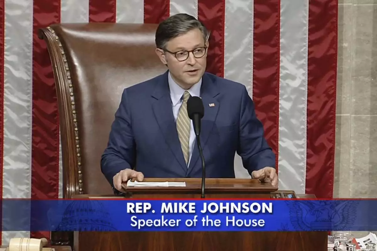 In this image from video, Speaker of the House Mike Johnson, R-La., announces the final vote total after the House of Representatives passed President Donald Trump's big bill of tax breaks and program cuts after an all-night session at the U.S. Capitol in Washington, Thursday, May 22, 2025. (House Television via AP)