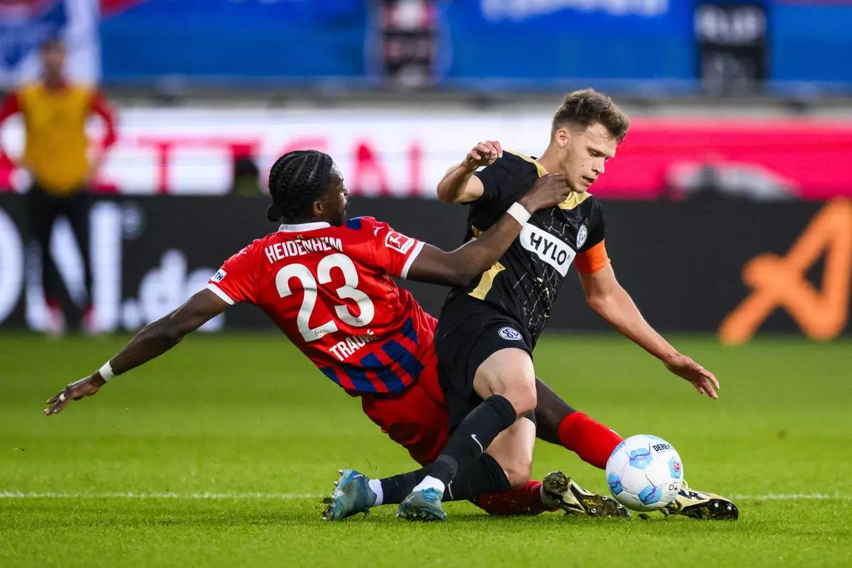 Omar Haktab Traoré thought he’d pulled one back for Heidenheim before the break, but the goal was ruled out after a VAR check found an offside player involved in the buildup.
