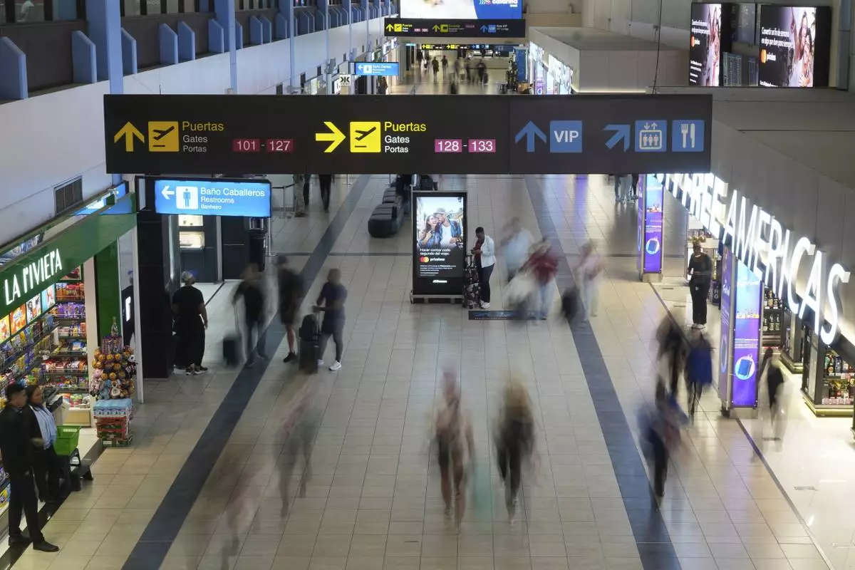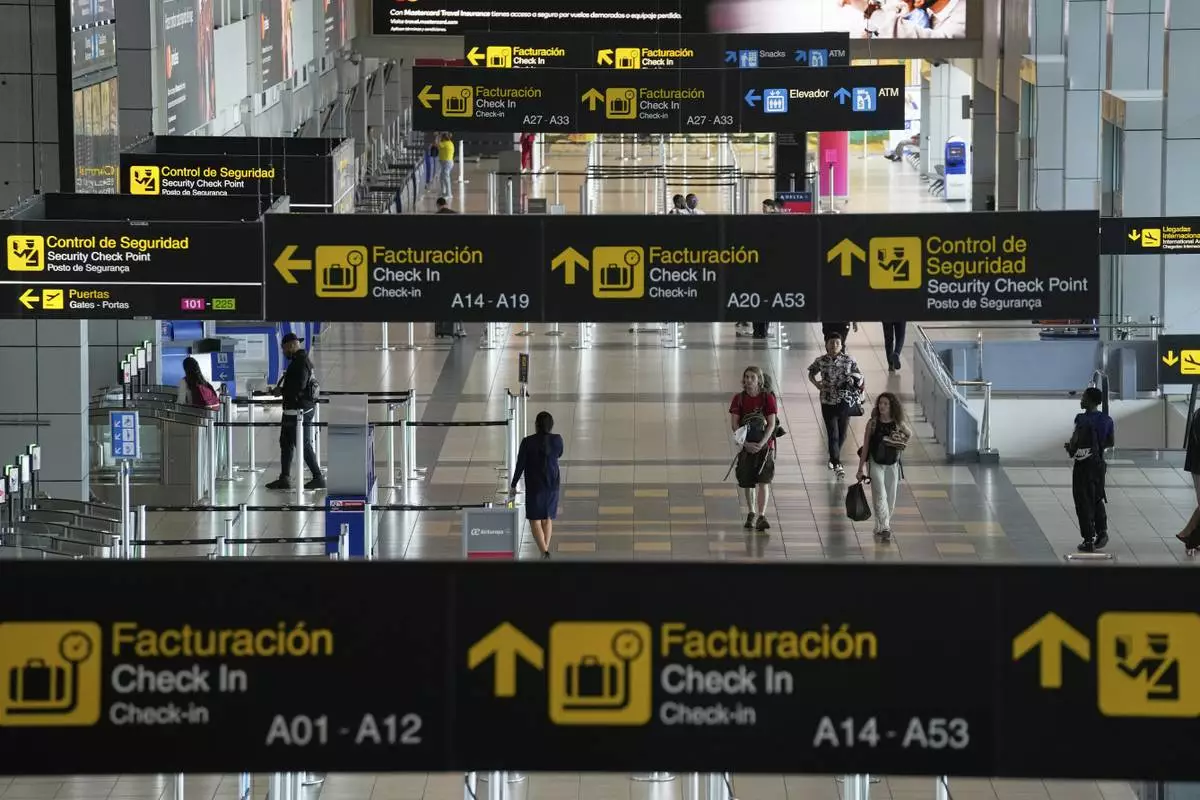 Travelers walk through Tocumen International Airport in Panama City, Thursday, May 22, 2025, as Panama and Venezuela prepare to resume commercial flights nearly a year after suspending them when Panamanian President Jose Raul Mulino refused to recognize the re-election of Venezuelan President Nicolas Maduro. (AP Photo/Matias Delacroix)