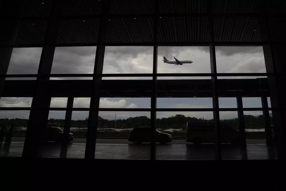 A plane lands at Tocumen International Airport in Panama City, Thursday, May 22, 2025, as Panama and Venezuela prepare to resume commercial flights nearly a year after suspending them when Panamanian President Jose Raul Mulino refused to recognize the re-election of Venezuelan President Nicolas Maduro. (AP Photo/Matias Delacroix)