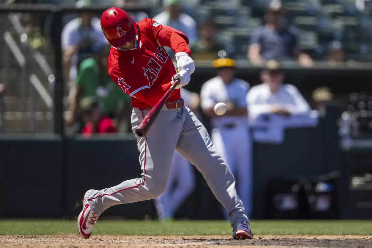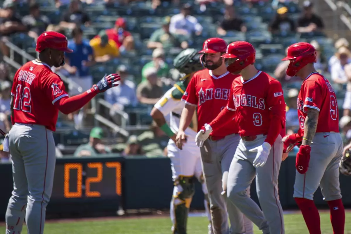 This story removes an incorrect reference to the Angels completing a 7-0 road trip and clarifies that it’s their first four-game sweep of the Athletics on the road in 28 years.