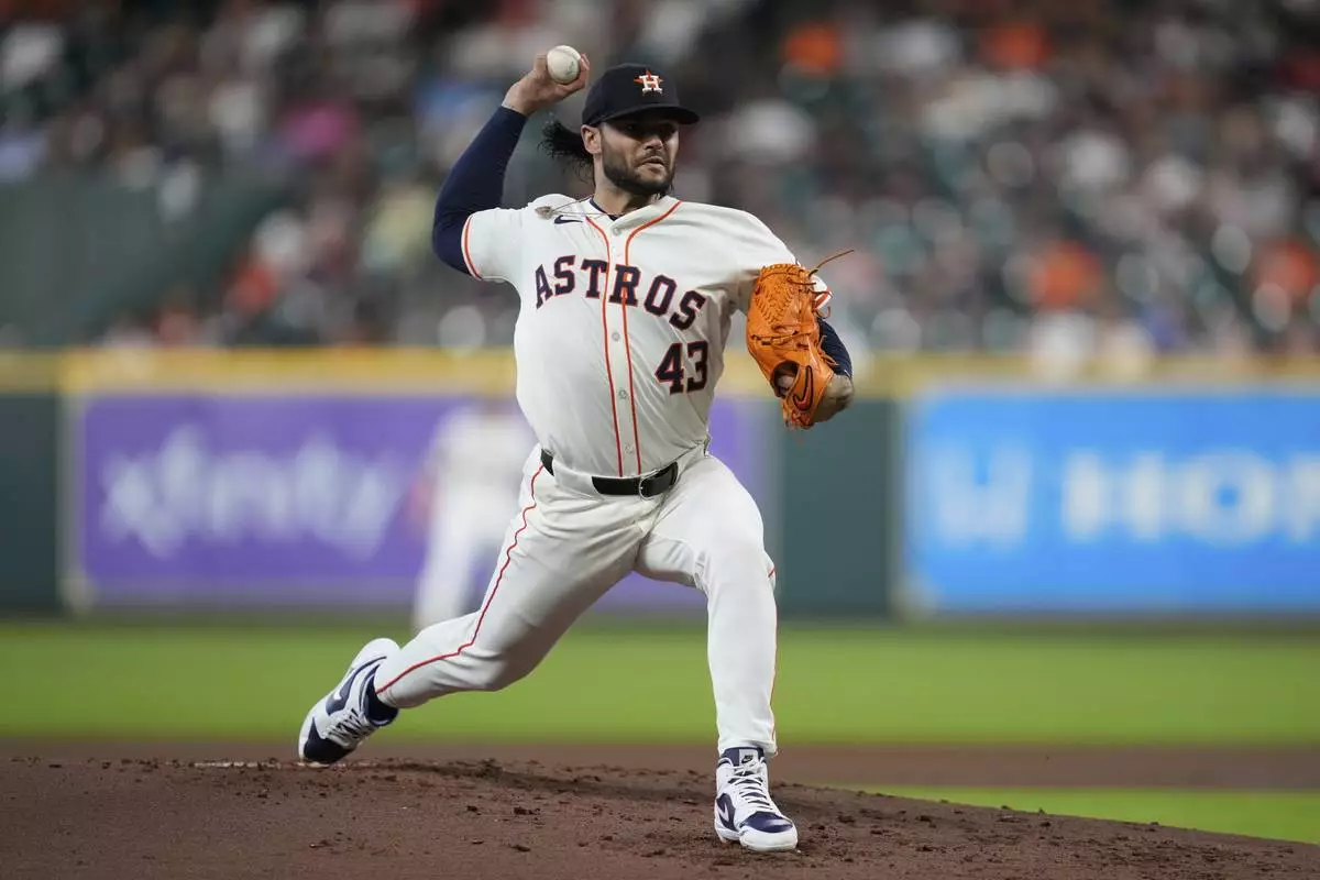 Houston Astros starting pitcher Lance McCullers Jr. throws during the second inning of a baseball game against the Houston Astros in Houston, Thursday, May 22, 2025. (AP Photo/Ashley Landis)