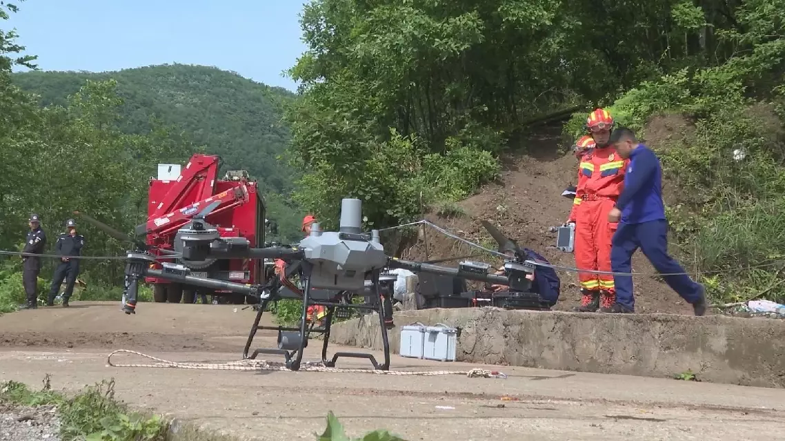Meanwhile, a large drone has also been deployed to aerially transport essential equipment such as life detectors, 5G transmission devices, and other rescue materials to the disaster zone.