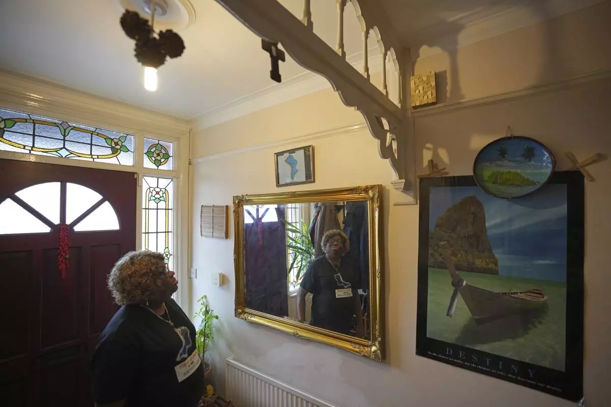 Chagossian Bernadette Dugasse speaks, during an interview with The Associated Press, at her home in London, Tuesday, March 25, 2025. (AP Photo/Kin Cheung)