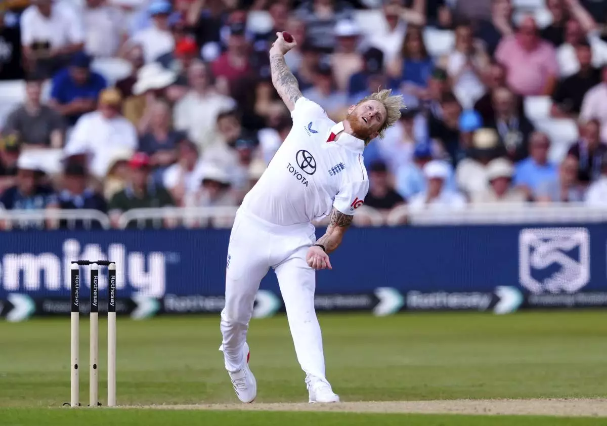England's Ben Stokes bowling on day two of the Rothesay International test series match between England and Zimbabwe, at Trent Bridge, Nottingham, England, Friday May 23, 2025. (Mike Egerton/PA via AP)