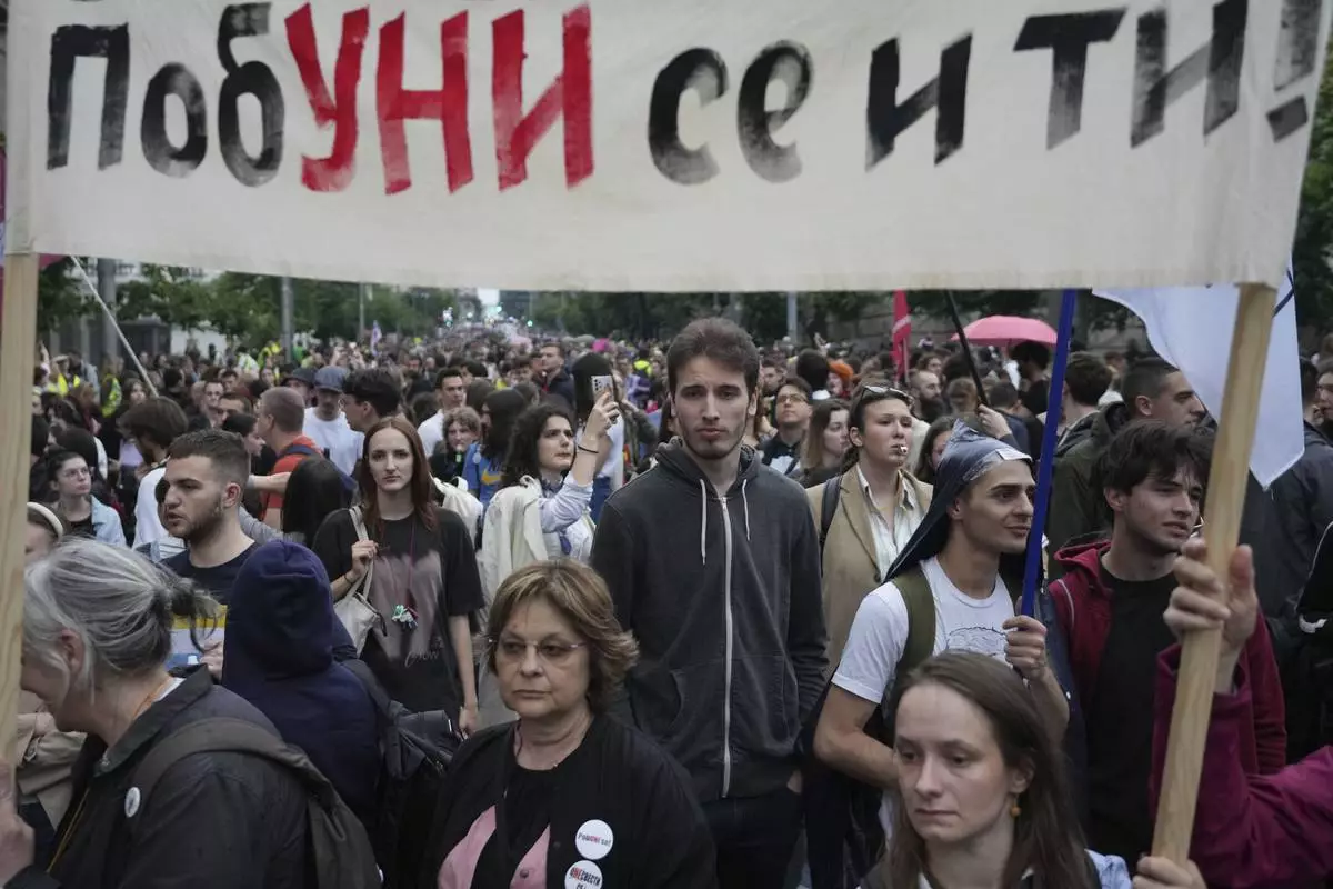 BELGRADE, Serbia (AP) — Thousands of protesters braved a rainstorm in the Serbian capital on Friday to join a rally against a government crackdown on universities that have played a key role in months-long anti-corruption protests that continue to pressure the Balkan country’s populist government.