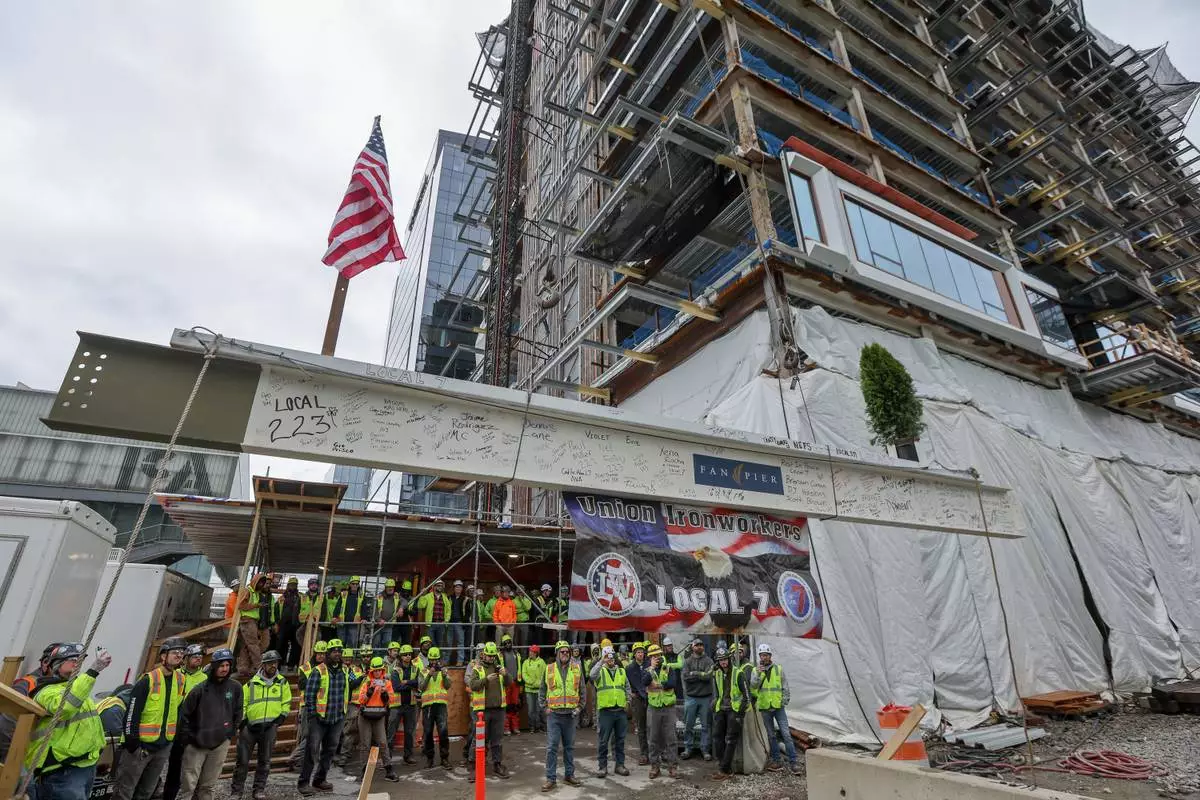 “This milestone represents more than just construction progress. It’s the final chapter of a long-standing vision to redefine Boston’s waterfront,” said The Fallon Company Chairman Joseph Fallon. “Fan Pier has exceeded every expectation, and we’re proud of the community it’s become. Today is also about recognizing the incredible work of the construction teams and laborers who brought this vision to life, beam by beam. Their dedication and craftsmanship have been essential to every step of this journey.”