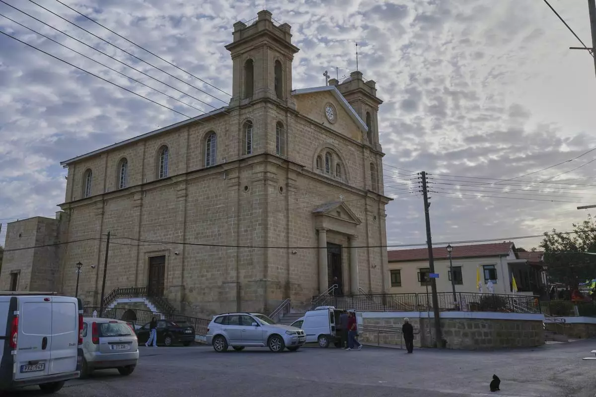 St. George Church in the Maronite village of of Kormakitis in the breakaway north of the ethnically divided Cyprus on Wednesday, April 23, 2025. (AP Photo/Petros Karadjias)