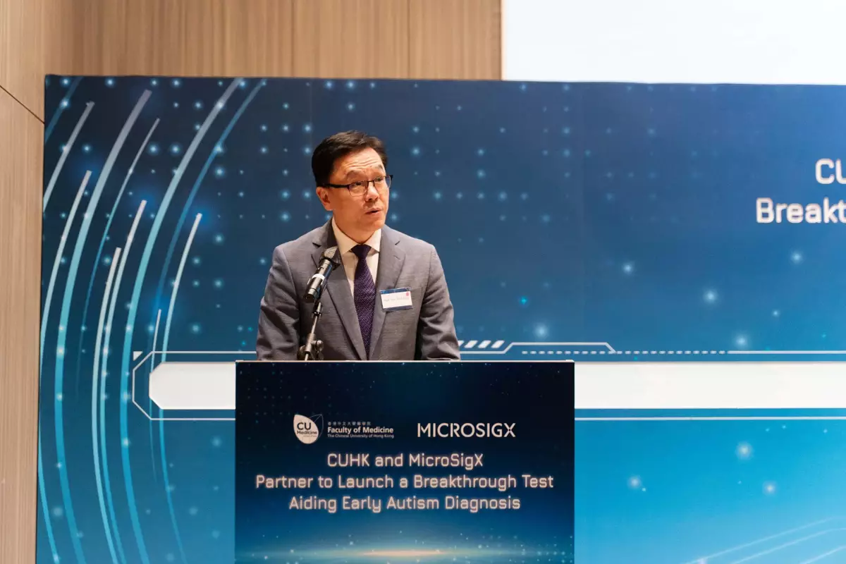 Good morning. I am pleased to join the Faculty of Medicine of CUHK (Chinese University of Hong Kong) at the launch of its groundbreaking innovation in early detection of autism spectrum disorder (ASD). Congratulations to CUHK Faculty of Medicine and MicroSigX on your achievements, which once again exemplify the fruitful outcomes of our collaborative efforts in innovation and technology (I&T).