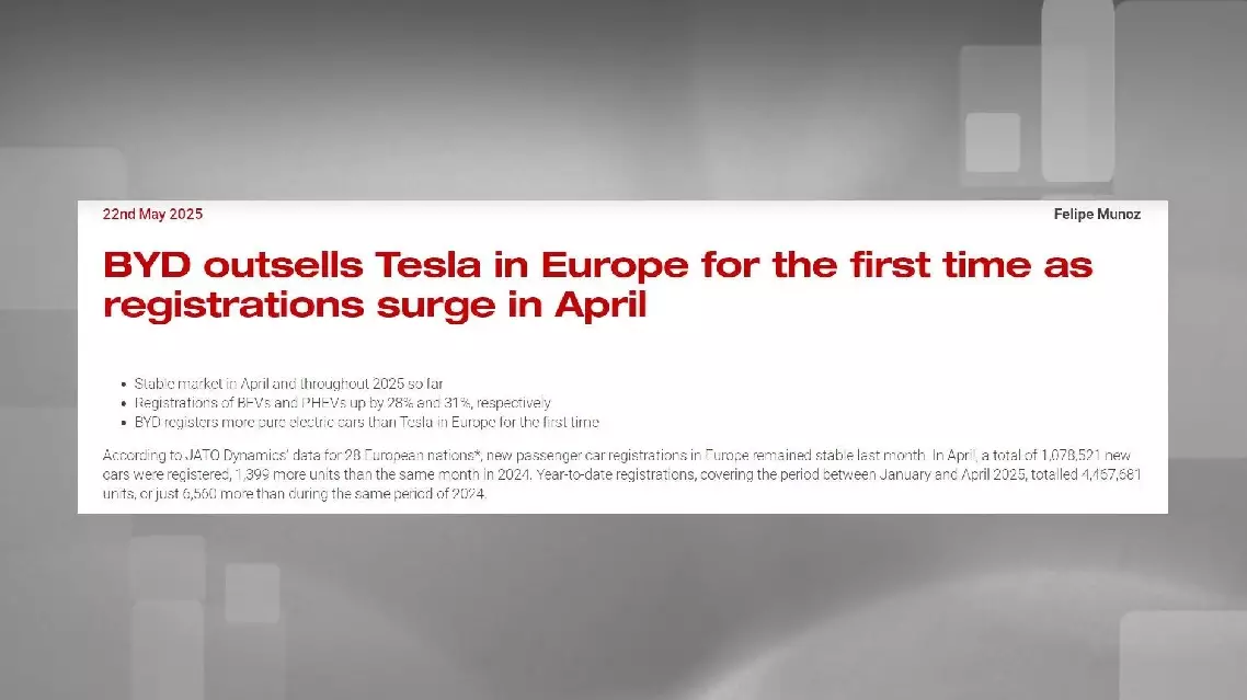 BYD outsells Tesla in Europe for first time as registrations surge in April: report