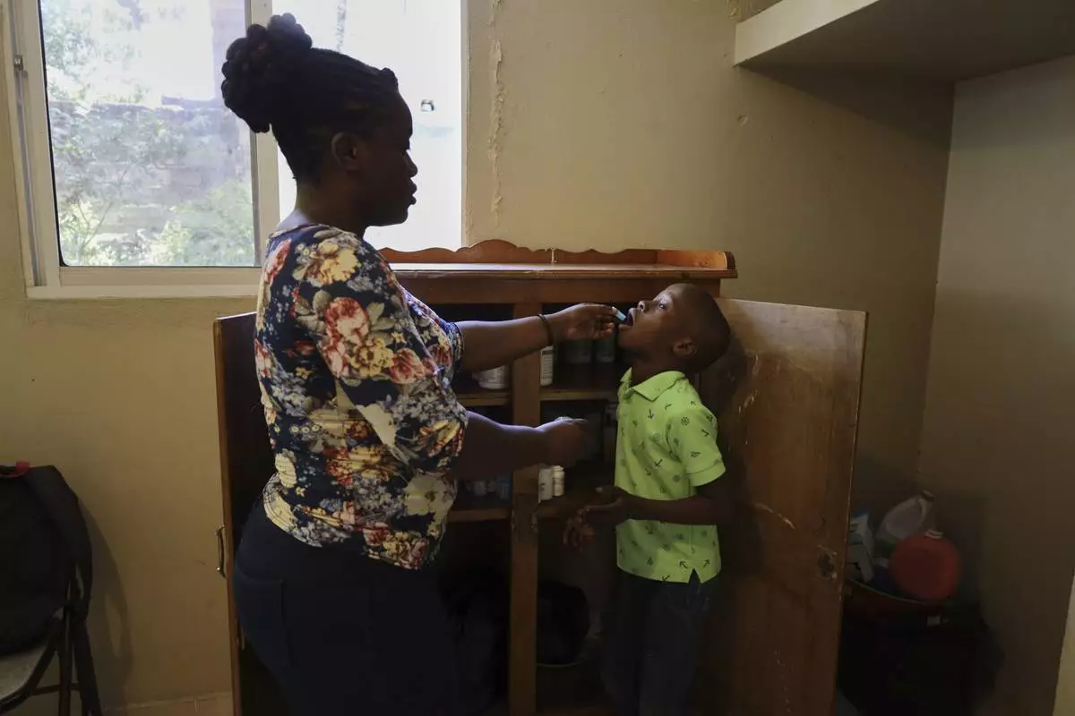 Nurse Préjuste Mexandra administers medicine to a child at the Caring for Haitian Orphans with AIDS orphanage, in Balan, Plaine-du-Nord, Haiti, Wednesday, May 21, 2025. (AP Photo/Patrice Noel)