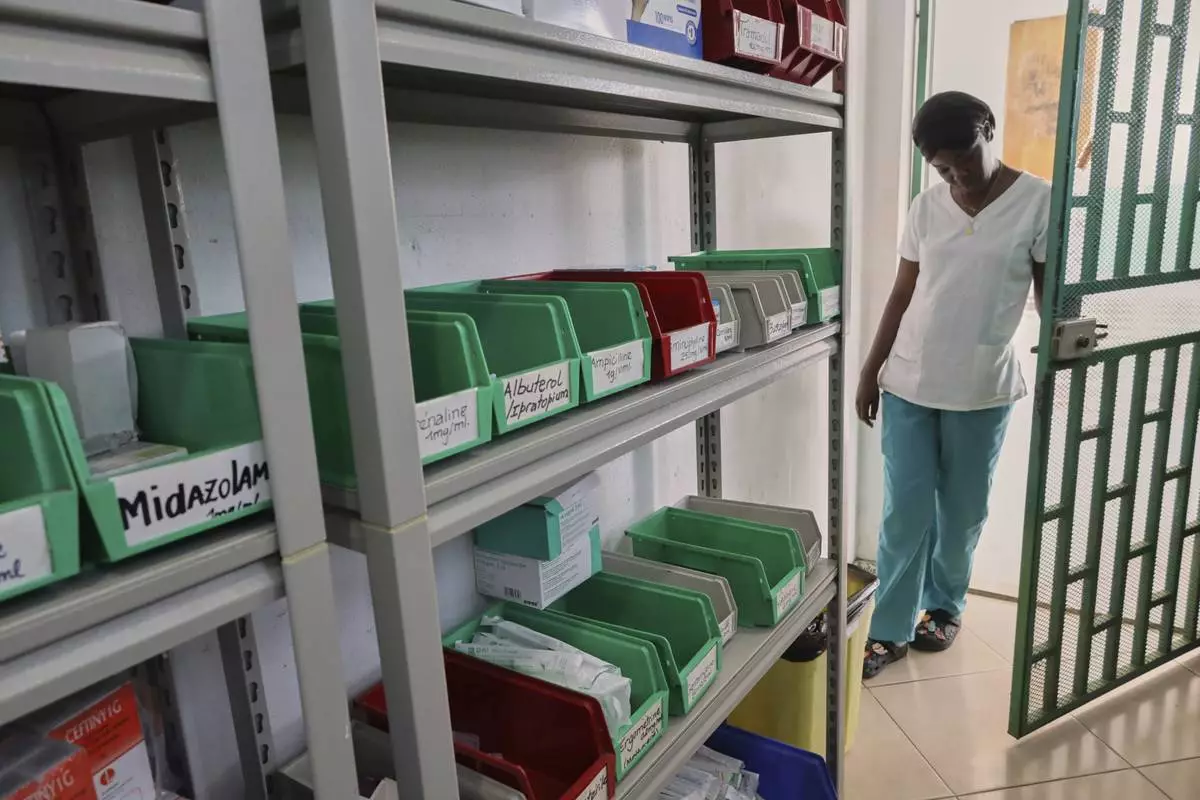 A nurse enters the medicine inventory room at New Hope Hospital in Plaine-du-Nord, Haiti, Wednesday, May 21, 2025. (AP Photo/Patrice Noel)