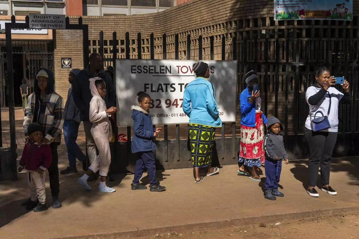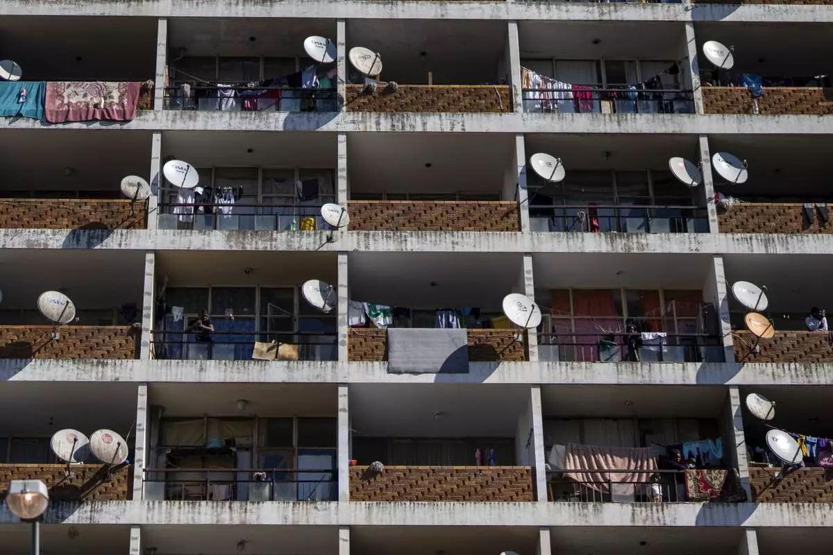 Residents watch the annual Hillbrow street parade organized by the Windybrow Arts Centre and other local organisations go by in downtown Johannesburg, South Africa, Saturday, May 24, 2025. (AP Photo/Jerome Delay)burg, South Africa, Saturday, May 24, 2025. (AP Photo/Jerome Delay)