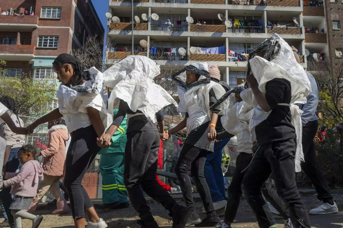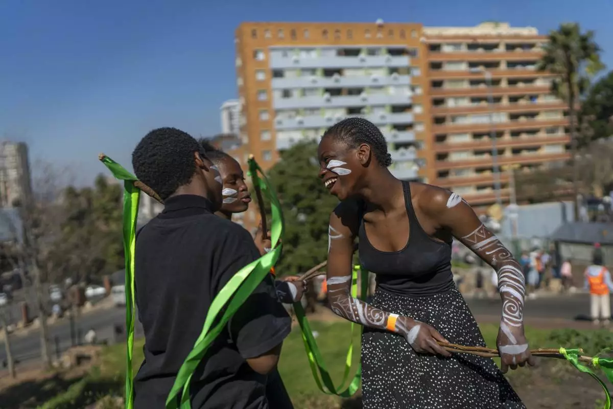 JOHANNESBURG (AP) — The streets of Hillbrow, a tough downtown Johannesburg district more famous for its hijacked buildings, poverty and crime, came alive on this sunny Saturday morning as hundreds joined in a joyful street parade mixing music, art and performances.
