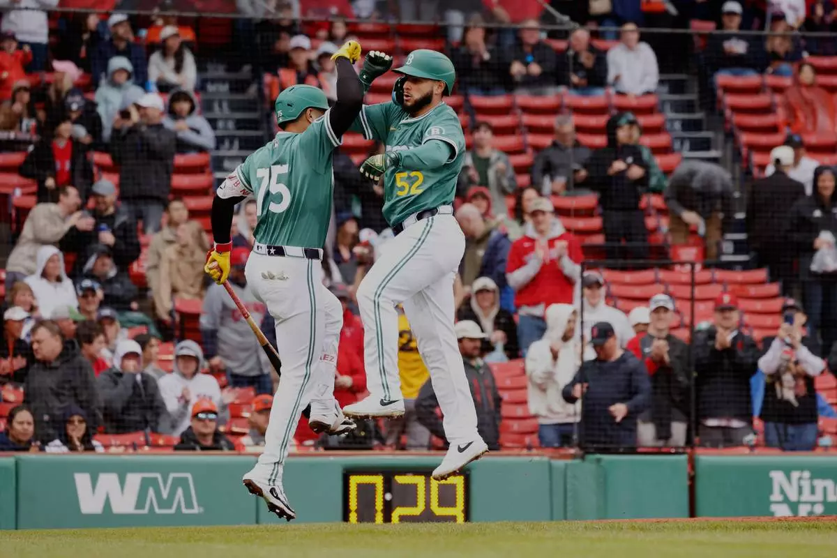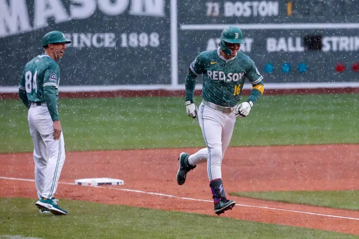Wearing their “Fenway Greens” alternate uniforms that debuted this month and match the color of the Green Monster, the Red Sox had a solo homer each by Jarren Duran, Wilyer Abreu and Abraham Toro.