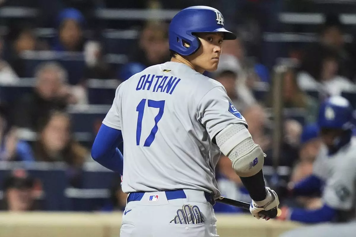 Los Angeles Dodgers' Shohei Ohtani prepares to bat during the first inning of a baseball game against the New York Mets Friday, May 23, 2025, in New York. (AP Photo/Pamela Smith)