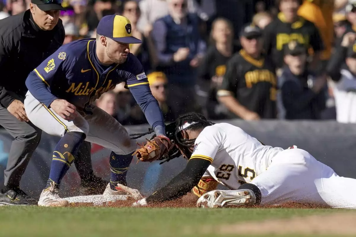 PITTSBURGH (AP) — Oneil Cruz tripled home Isiah Kiner-Falefa with two outs in the seventh inning and the Pittsburgh Pirates edged the Milwaukee Brewers 2-1 on Saturday.