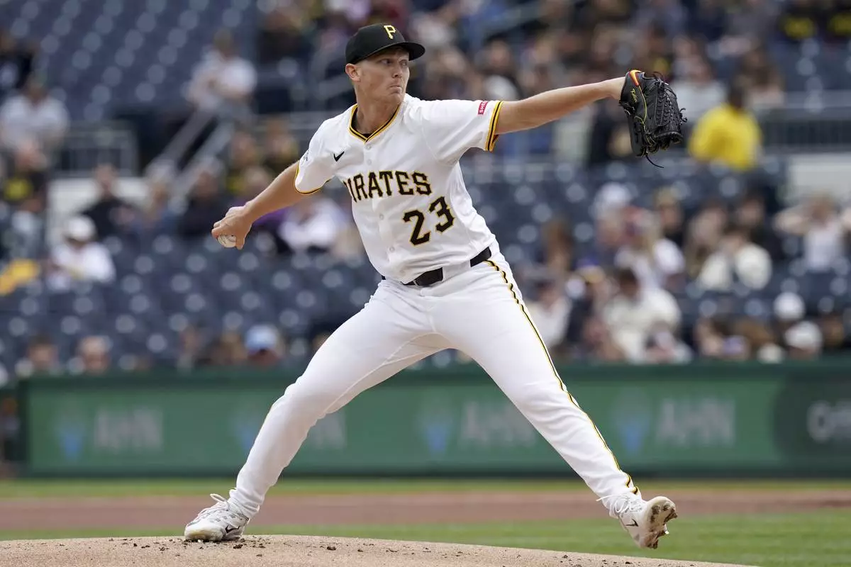 Pittsburgh Pirates pitcher Mitch Keller delivers during the first inning of a baseball game against the Milwaukee Brewers Saturday, May 24, 2025, in Pittsburgh. (AP Photo/Matt Freed)