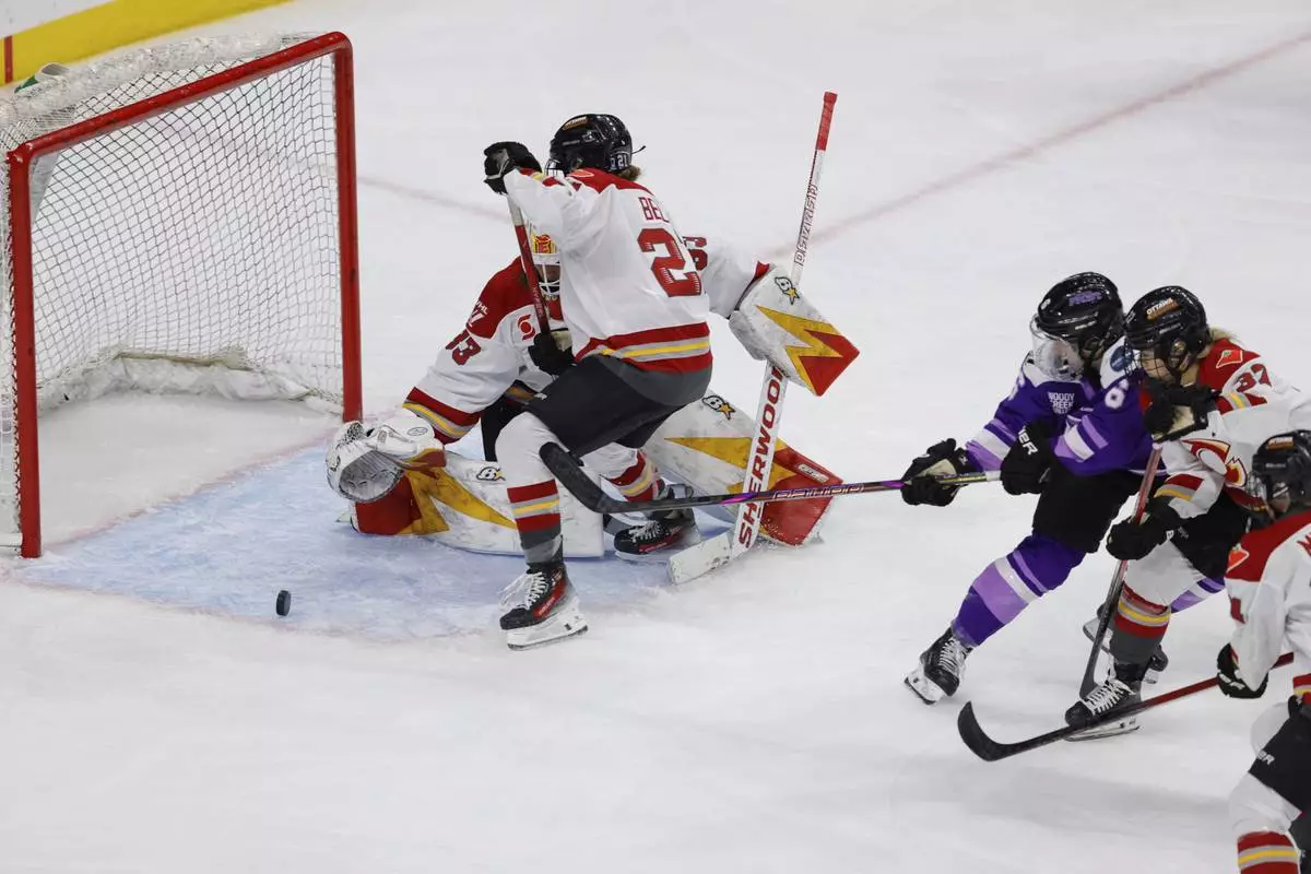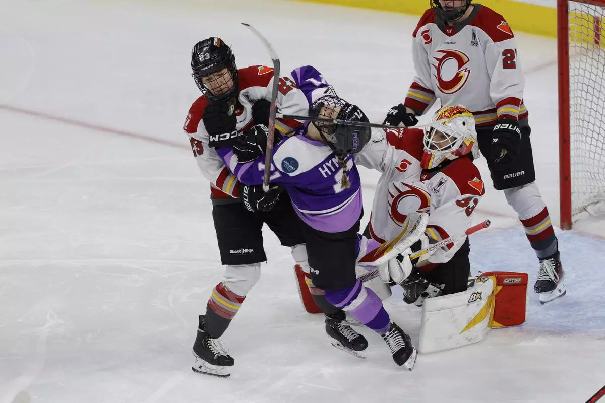 Klara Hymlarova blasted a shot from the point that was blocked by Phillips but Knoll was there for a back-hand putback from in front of the net 9:57 into the third OT.