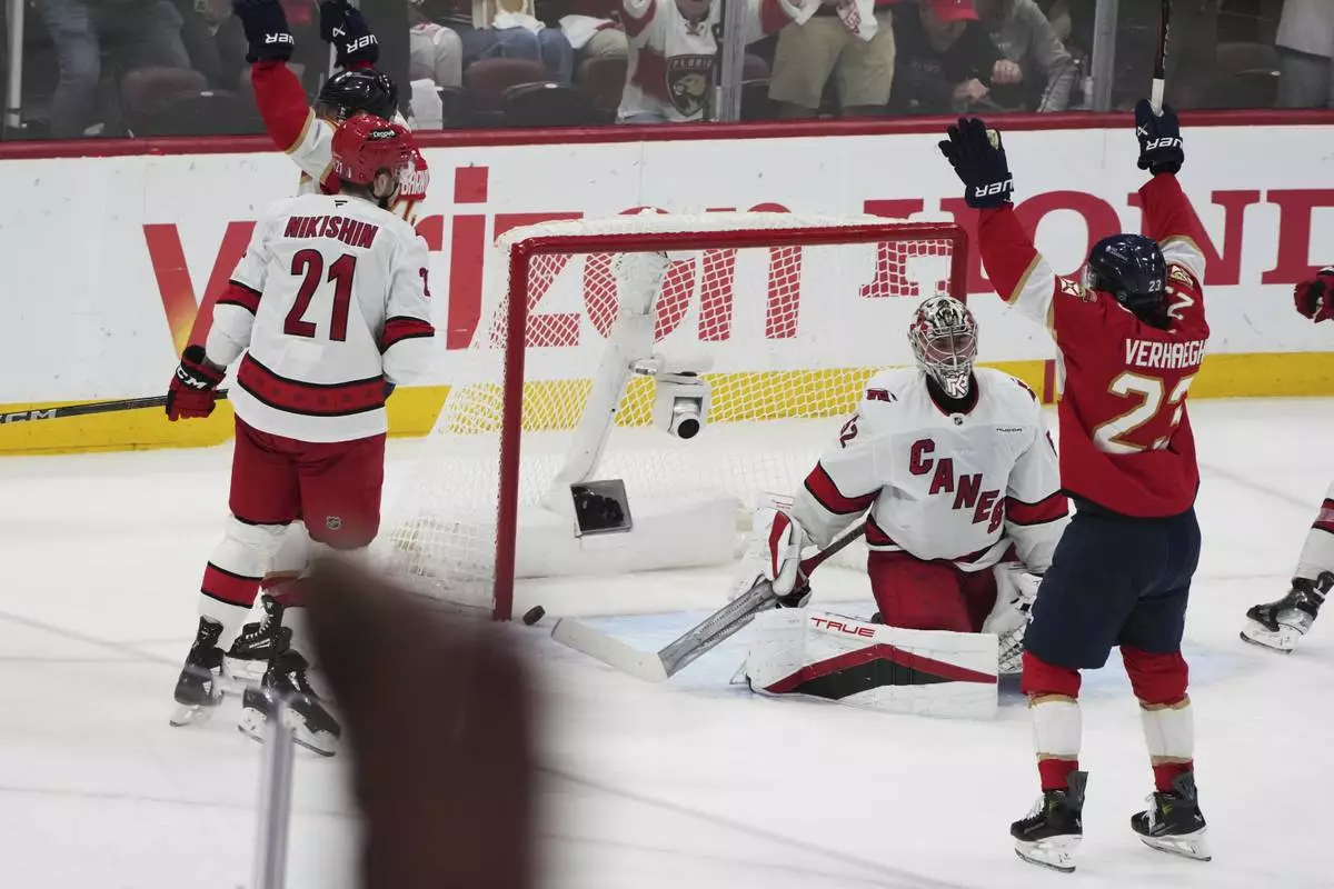 It never got there. Mikkola's pass deflected off Carolina defenseman Dmitry Orlov and past Kochetkov, opening the scoring and giving Florida an 11-2 cumulative score lead in the series to that point.