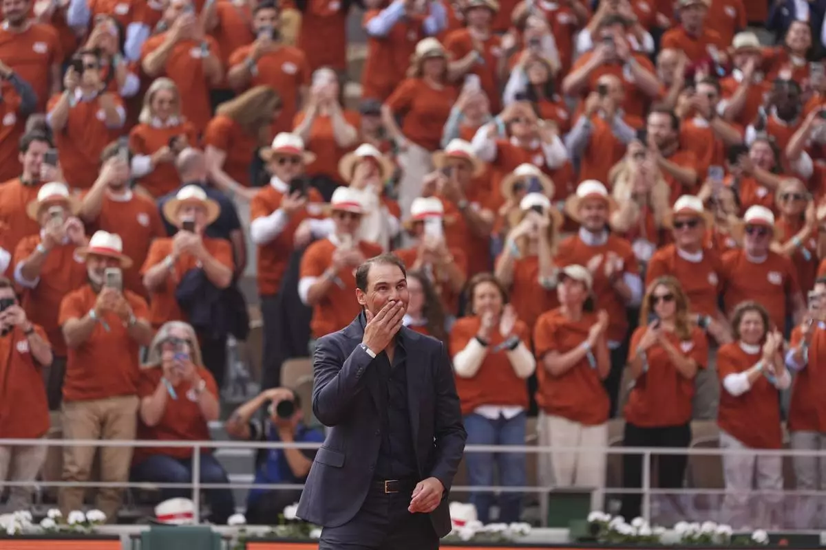 The recently retired Nadal, who won 14 of his 22 major titles on the same court, was given a special trophy during an emotional ceremony where his old rivals — Djokovic, Roger Federer and Andy Murray — all turned up to bid the suit-wearing Nadal farewell.