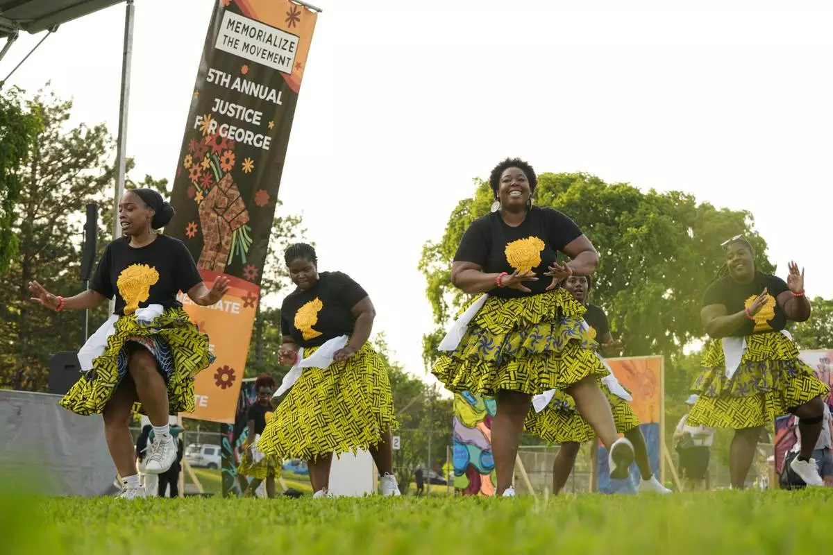 Dancers perform at a park near George Floyd Square on the five-year anniversary of Floyd's death, Sunday, May 25, 2025, in Minneapolis. (AP Photo/Abbie Parr)