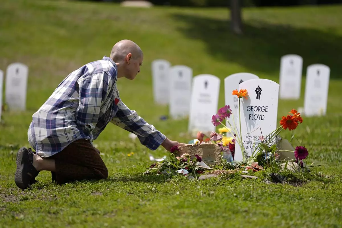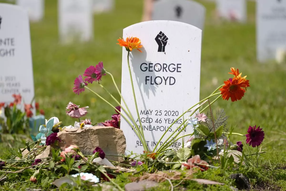 A tribute to George Floyd is pictured at the Say Their Names Cemetery on the five-year anniversary of Floyd's death, Sunday, May 25, 2025, in Minneapolis. (AP Photo/Abbie Parr)
