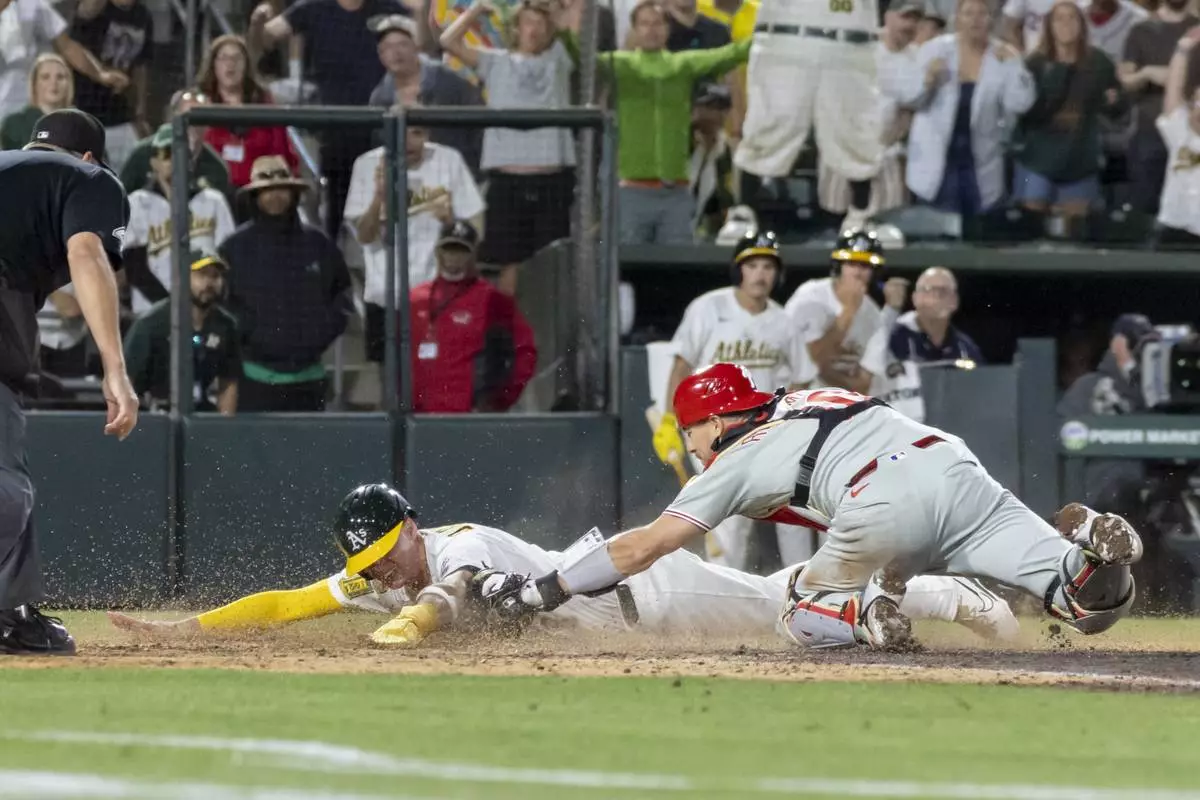 A day after blowing a ninth-inning lead, Mason Miller allowed a two-out single in the ninth to Alec Bohm. Johan Rojas pinch ran and MacIver, a 28-year-old catcher who had been in the minors since 2018, threw to shortstop Jacob Wilson, who tagged the sliding Rojas on an elbow.