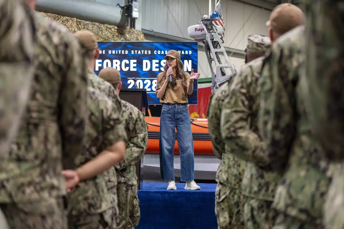 During her trip to the Middle East, U.S. Homeland Security Secretary Kristi Noem visited a naval base in Bahrain, where she met with coast guard personnel, served meals and signed autographs.