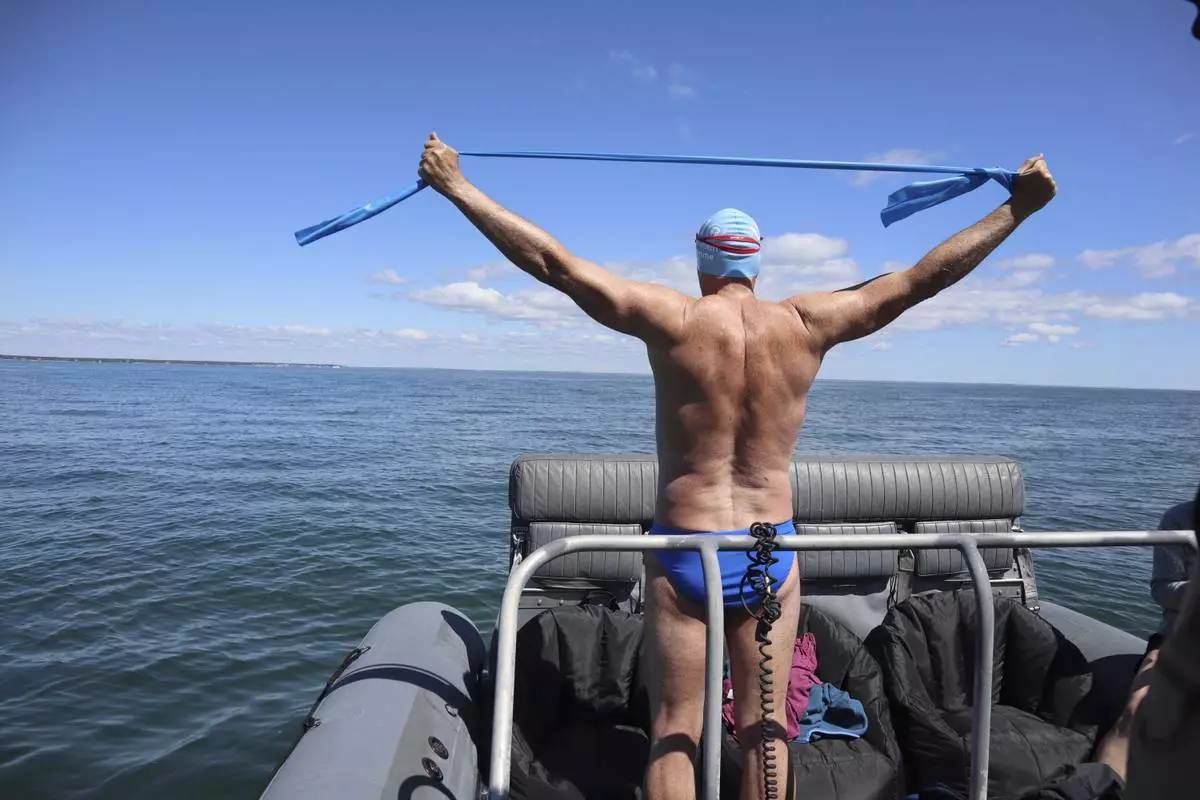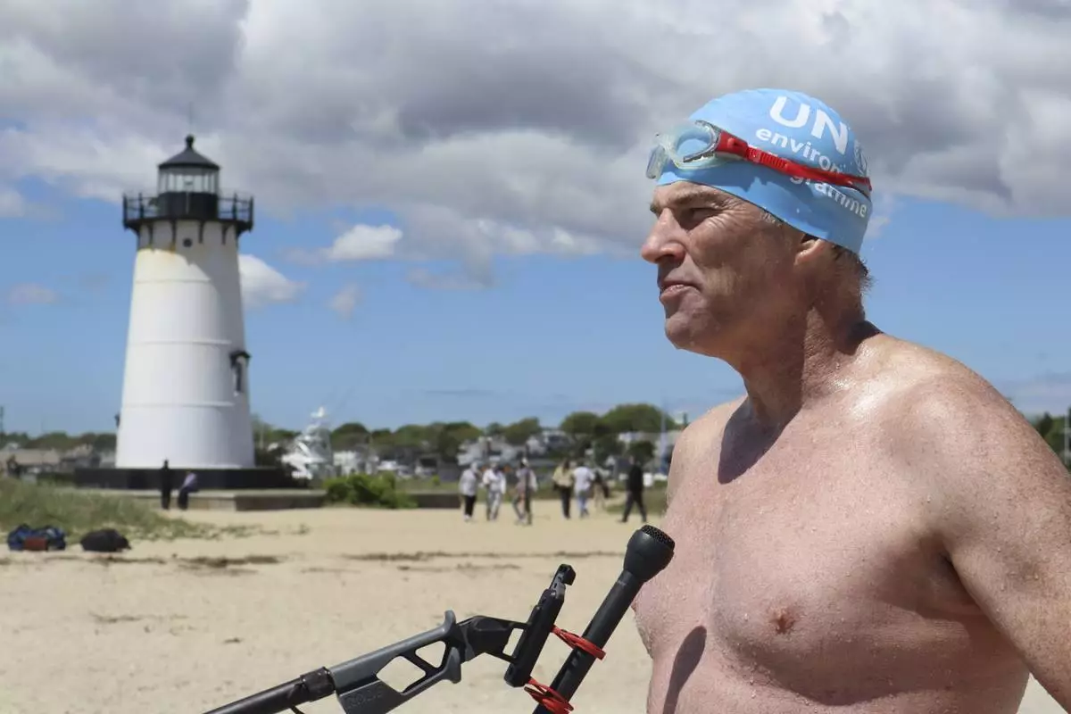 “We've been fighting sharks for 50 years,” he said after completing the last 1.2 miles (2 kilometers) of the swim before exiting the ocean at the Edgartown Harbor Lighthouse, near where “Jaws” was filmed. “Now, we need to make peace with them.”