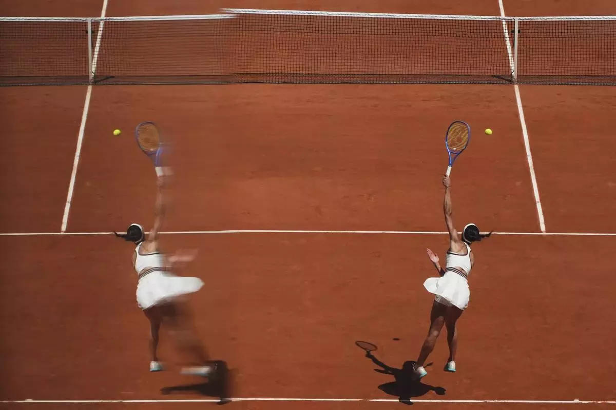 Slovakia's Rebecca Sramkova serves against Poland's Iga Swiatek during their first round match of the French Tennis Open, at the Roland-Garros stadium, in Paris, Monday, May 26, 2025. (AP Photo/Christophe Ena)