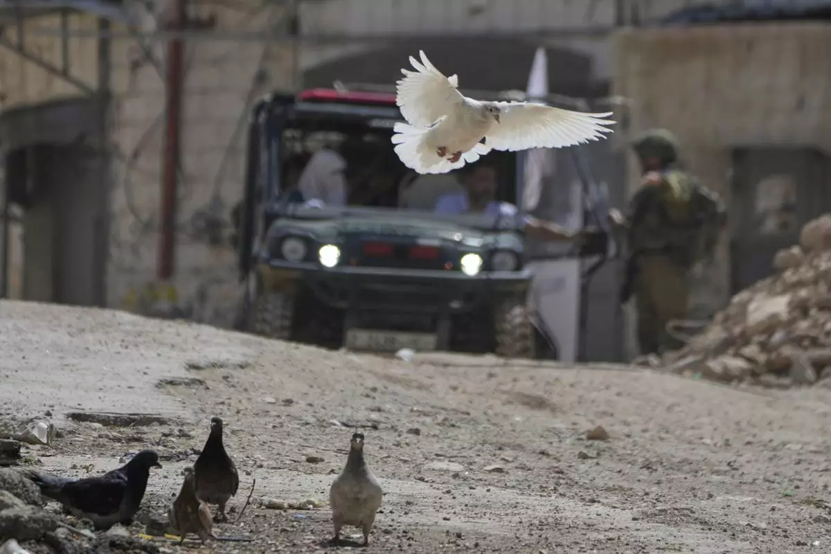 Palestinians carry the body of Mahmoud Al-Kharaz, 32, who was killed during an Israeli military raid, as they attend his funeral in the West Bank city of Nablus, Tuesday, May 27, 2025. (AP Photo/Majdi Mohammed)