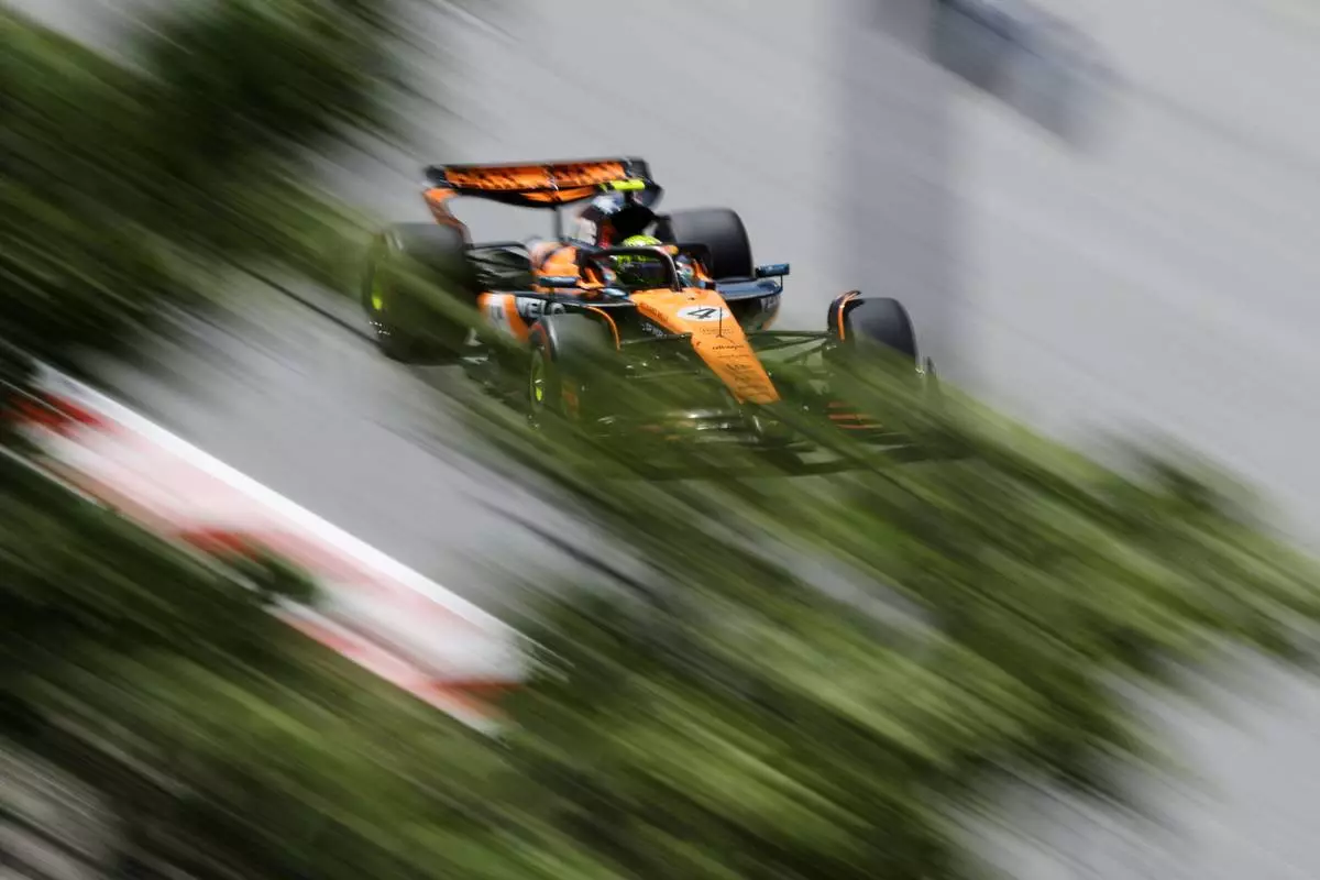 McLaren driver Lando Norris of Britain steers his car during the first free practice ahead of the Spanish Grand Prix Formula One race at the Barcelona Catalunya racetrack in Montmelo, near Barcelona, Spain, Friday, May 30, 2025. (AP Photo/Joan Monfort)