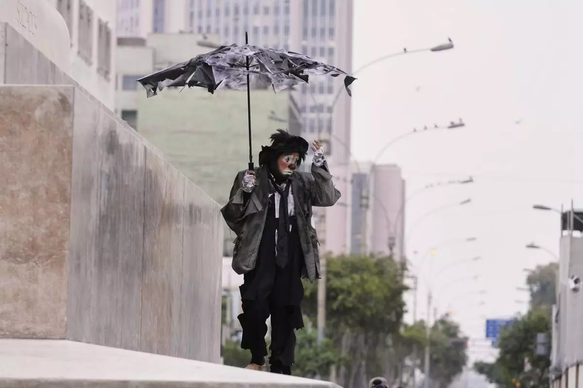 A clown walks to take part in National Clown Day celebrations in Lima, Peru, Sunday, May 25, 2025. (AP Photo/Martin Mejia)