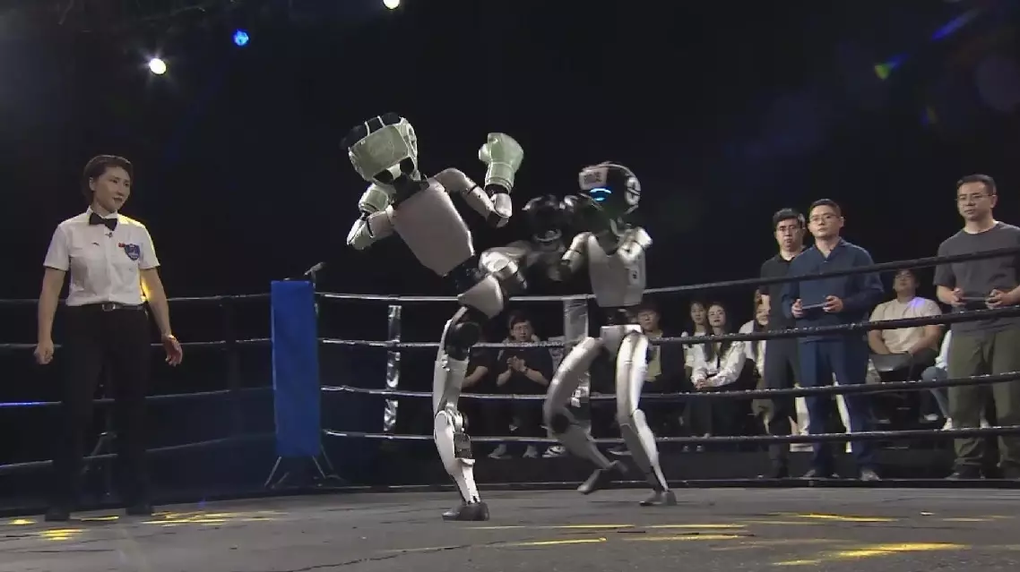 The first match featured "AI Strategist" operated by Lu Xin against "Silk Artisan" operated by Jiao Tianqi. In the first round, "Silk Artisan" scored with agile leg strikes and suppressed its opponent with side kicks. The second round saw both sides engaging in knee strikes. In the third round, "AI Strategist" delivered a decisive knee blow, knocking down the opponent and securing victory.