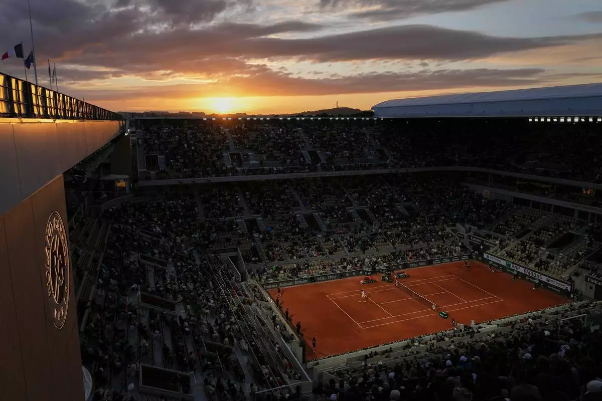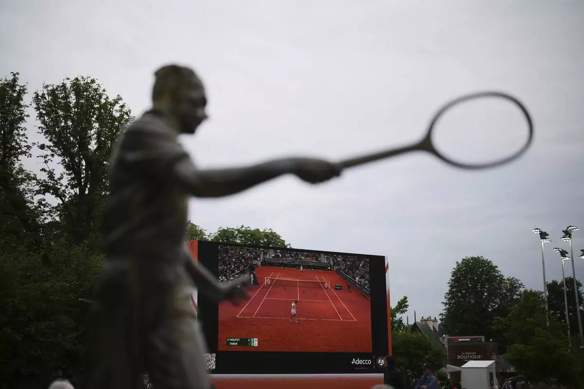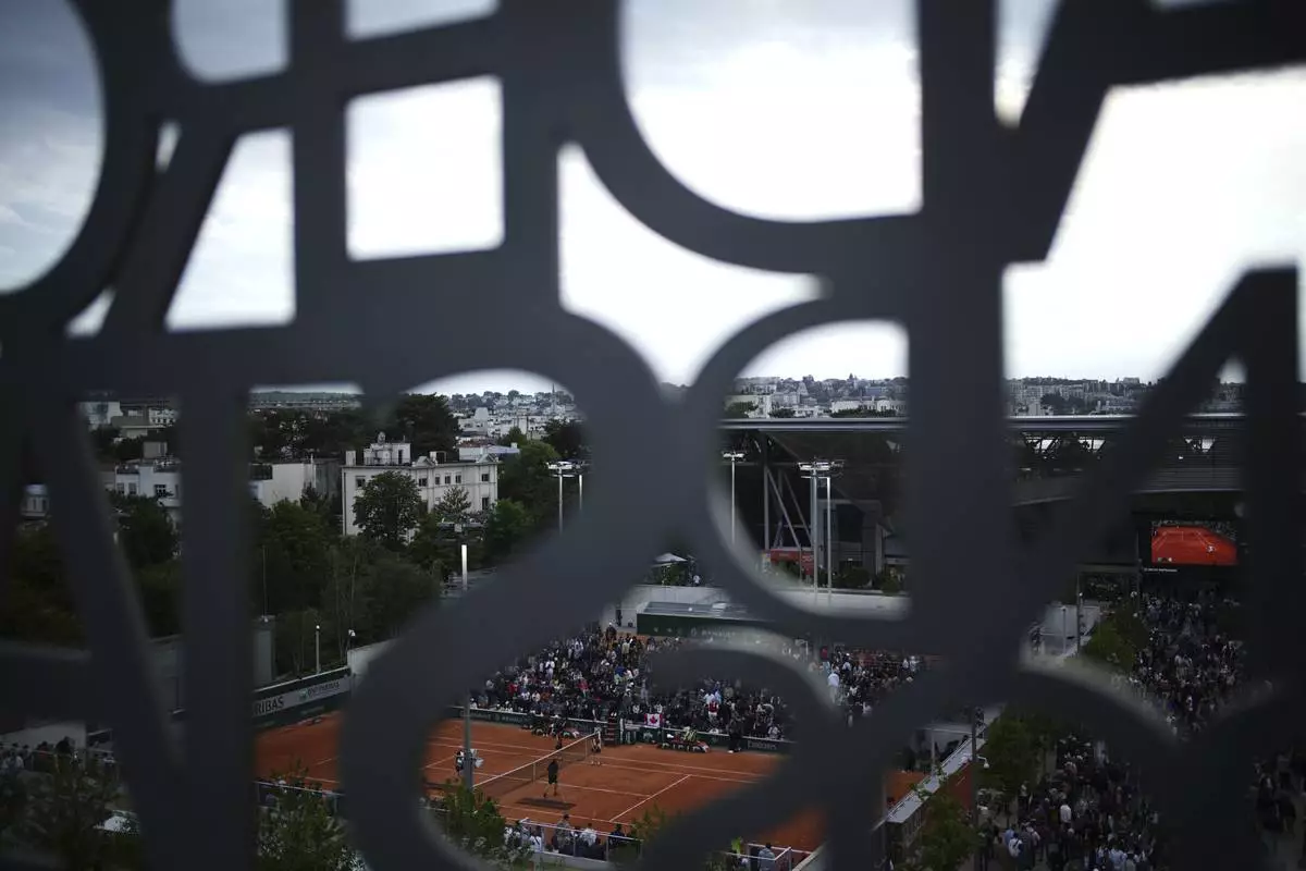 The Roland-Garros logo stands out on the occasion of the French Tennis Open, at the Roland-Garros stadium, in Paris, Wednesday, May 28, 2025. (AP Photo/Christophe Ena)