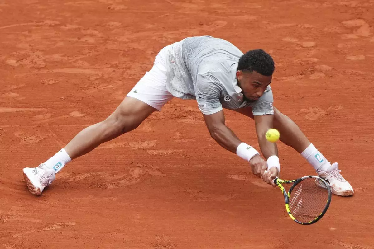 France's Arthur Fils reaches for the ball as he plays Chile's Nicolas Jarry during their first round match of the French Tennis Open, at the Roland-Garros stadium, in Paris, Monday, May 26, 2025. (AP Photo/Lindsey Wasson)