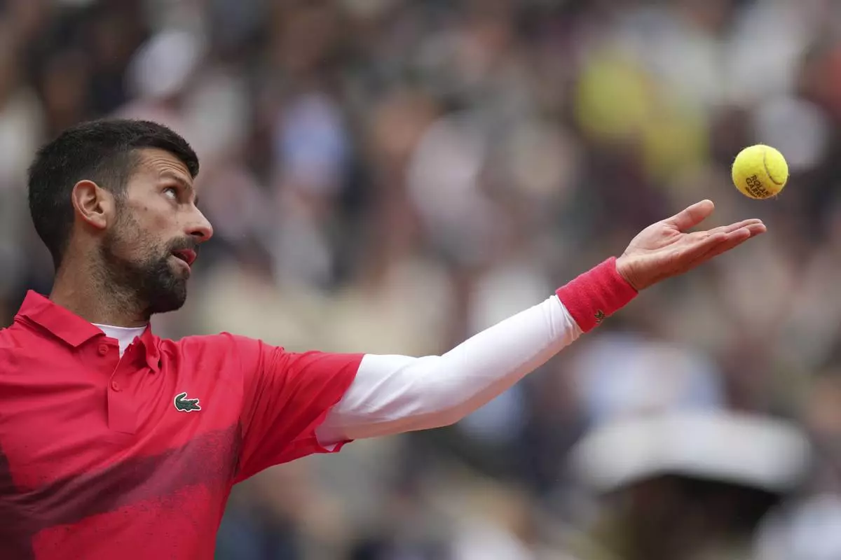 Serbia's Novak Djokovic serves against Mackenzie McDonald of the U.S. during their first round match of the French Tennis Open, at the Roland-Garros stadium, in Paris, Tuesday, May 27, 2025. (AP Photo/Christophe Ena)
